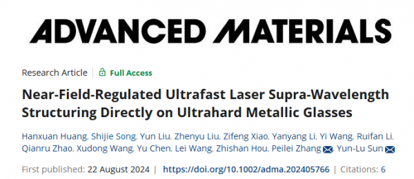 復旦大學信息科學與工程學院、上海工程技術大學材料工程學院、上海市先進激光制造技術協同創新中心的科研人員報道了近場調控超快激光超波長結構直接加工超硬金屬玻璃。相關論文以“Near-Field-Regulated Ultrafast Laser Supra-Wavelength Structuring Directly on Ultrahard metallic Glasses”為題發表在《Advanced Materials》上。