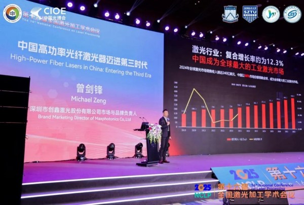 創鑫激光市場與品牌負責人曾劍鋒先生受邀出席并發表主題演講《中國高功率光纖激光器邁進第三時代》,向與會專家學者及產業同仁系統闡述了行業發展的新階段、新特征與新使命,引發了現場熱烈反響與深度共鳴。