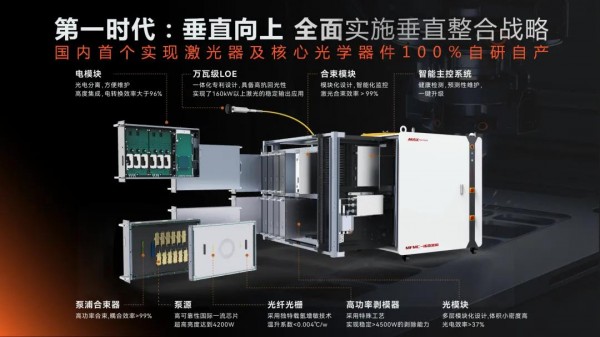 曾劍鋒先生回顧了中國工業光纖激光器產業格局和發展邏輯,表示之所以中國能成為全球最大的工業激光市場,不僅僅因為中國激光工業的韌性和潛力,更有第一代“追光人”為了實現激光中國芯的夢想,讓中國制造業能用得起、用得好國產光纖激光器這一最好的加工工具。以此界定中國國產光纖激光器的第一時代:就是實施向上垂直整合戰略,實現了從無到有的突破,打破了國外巨頭壟斷,研發出100%國產的激光器。