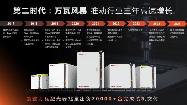 創鑫激光對萬瓦市場的成功開拓以此帶動了中國激光全產業鏈的升級發展。下游激光設備企業無一例外的在后續發展中持續以萬瓦級激光切割設備為業務重點,推動了國產超高功率激光設備的集體爆發。