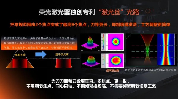 榮光系列,采用獨創的“生發膏”技術及“激光絲”光路,以及業界獨創全軌跡抬高噴嘴滑行切割,開啟行業全新的第二條切割工藝路線。