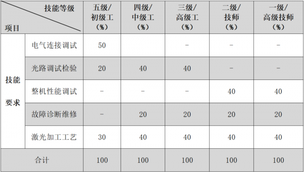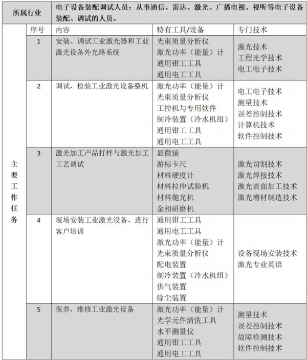 《激光設備安裝調試員》新職業列出的主要工作任務