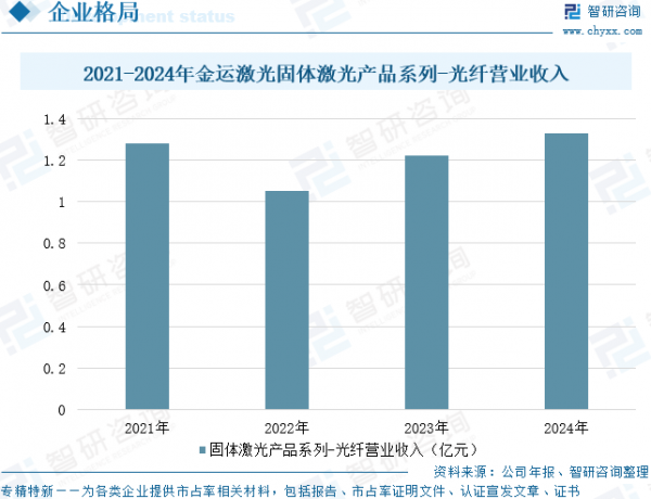 武漢金運激光股份有限公司成立于2005年,于2011年作為激光類企業在深圳證券交易所創業板上市,秉承利用數字技術改造傳統產業的數智化戰略規劃,以技術研發為抓手,以技術應用為導向,歷經十年打磨,公司已躍升成為數字技術商業化應用解決方案提供商。金運激光開拓創新、銳意進取,構建了工業智能應用和商業智能應用兩大業務板塊。在工業智能激光設備制造領域,針對柔性非金屬材料推出了大幅面激光裁床、小幅面激光切割機、數碼印激光切割機、激光模切機、激光雕刻機等系列機型,應用領域涉及汽車制造、工業過濾、航空航天、特種防護、電子電器、數碼印花、印刷包裝、薄膜膠帶、紡織服裝、鞋材箱包、戶外運動等行業,以客戶需求為導向,堅持聚焦行業細分領域,持續加大研發投入和力度,著力打造具有專精特新的明星產品,滿足各行業客戶的加工需求。數據顯示,2024年金運激光固體激光產品系列-光纖營業收入為1.33億元,同比增長9.02%。