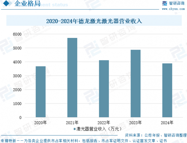 蘇州德龍激光股份有限公司主營業務為高端工業應用精密激光加工設備及其核心器件激光器的研發、生產和銷售。公司是一家技術驅動型企業,自成立以來,一直致力于新產品、新技術、新工藝的前沿研究和開發。公司專注于激光精細微加工領域,憑借先進的激光器技術、高精度運動控制技術以及深厚的激光精細微加工工藝積淀,聚焦于半導體、面板顯示、新型電子及新能源等應用領域,為各種超薄、超硬、脆性、柔性及各種復合材料提供激光加工解決方案。同時,公司通過十多年自主研發,擁有激光器核心技術,產品線覆蓋納秒、超快(皮秒、飛秒)及可調脈寬系列固體激光器、光纖激光器、高功率半導體激光器等工業級量產成熟產品。據統計,2024年德龍激光激光器營業收入為3881萬元,同比下降20%,主要是受激光器市場持續激烈的競爭影響,激光器銷售不及預期。