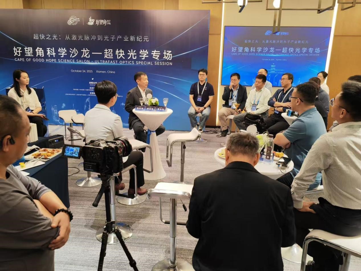 10月24日,“好望角科學(xué)沙龍”超快光學(xué)專場(chǎng)活動(dòng)在廈門舉行。本期沙龍主題為“超快之光:從激光脈沖到光子產(chǎn)業(yè)新紀(jì)元”,依托UltraFastX 2025國(guó)際學(xué)術(shù)會(huì)議開展,旨在推動(dòng)前沿學(xué)術(shù)、技術(shù)轉(zhuǎn)化與產(chǎn)業(yè)資本的融合和跨界交流,探討中國(guó)光子產(chǎn)業(yè)從“技術(shù)追趕”到“產(chǎn)業(yè)引領(lǐng)”戰(zhàn)略升級(jí)的路徑。