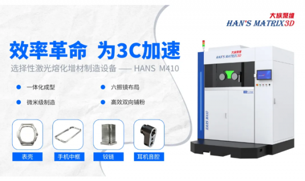 合作的成功落地,離不開金屬3D打印設備——HANS M410提供的核心支持。作為3C行業應用最廣泛的解決方案,其所具備的卓越制造特性,正成為推動零部件制造升級的關鍵驅動力。 一、當3C零件遇上微米級精度 HANS M410擁有微米級的精密制造體系(20-80μm),配合同等精度的粉末鋪層(20-50μm),穩定實現0.1mm級別的薄壁結構、微孔、復雜網格及內流道等高精度特征成形,完美契合3C零部件對極致輕量化與功能集成化的嚴苛需求。 二、當外觀質感遇上優越表面 經檢測,HAHS M410成型件的表面粗糙度(Ra值)通常可以達到5-10μm,經過簡單的后處理(如噴砂、拋光),可以達到鏡面效果,滿足3C產品對外觀和觸感的嚴苛要求。 三、當結構設計遇上一體化成型 HANS M410支持將需要多個零件組裝的結構(如手機中框與卡托、內部支架與卡扣)一次性打印成型,減少了組裝環節,提高了結構強度和可靠性。 四、當高效生產遇上六振鏡與雙向鋪粉 面對海量同質的智能手表表殼、耳機鉸鏈等零件,HANS M410的六振鏡系統實現了“準并行”打印,吞吐量數倍提升。結合雙向鋪粉技術,大幅減少非打印時間,更快地完成訂單,搶占新品發布窗口。 五、當成本控制遇上智能粉末管理系統 設備集成的粉末吸篩送系統,實現了粉末的自動回收、篩分與循環使用,將材料損耗降至最低,提高粉末利用率,為持續生產提供保障。 從概念到現實,從樣品到量產。HANS M410正以精密、高效與一體化的制造優勢,重新定義3C設計的可能性。未來,它將繼續攜手行業伙伴,共同探索智能硬件的下一個形態。