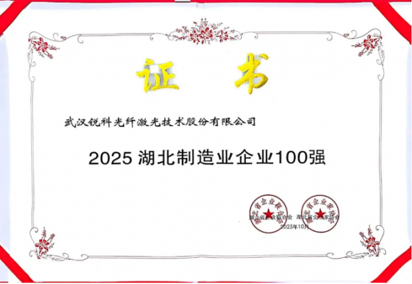 近日,湖北省企業聯合會、湖北省企業家協會向社會發布“2025湖北企業100強、湖北制造業企業100強、湖北服務業企業100強”榜單,銳科激光榮登湖北制造業企業100強榜單。...
