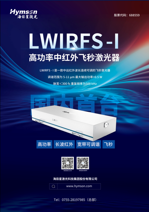 此次海目星將主要展示LWIRES-I高功率中紅外飛秒激光器,該產品是一款中遠紅外波長連續可調的飛秒激光器,調諧范圍為5-11 μm,最大輸出功率>0.5 W,脈寬
