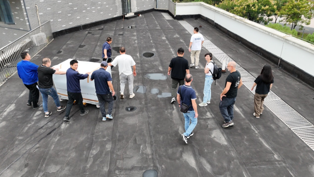 SCAR(飽和吸收腔衰蕩光譜儀)搬運的核心限制在于設備傾斜角必須小于10°,為此,研究中心專門聘用了在AMS與光刻機等超精密設備搬運方面富有經驗的貨運團隊。將設備搬運至4樓實驗室時,由于設備尺寸發生了微調,無法帶著包裝進入電梯。在杭州校區管委會多部門的協助下,通過反復比對多種方案后,團隊選擇了在最開始就拆掉包裝,裸機加延長板的方式,使用人力一點一點搬運。