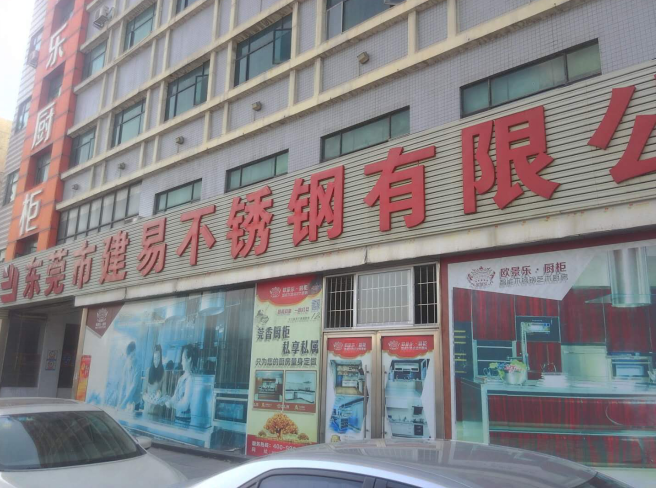 在跟林經理洽談時,他介紹,建易不銹鋼最初成立于1999年,也是區總從小作坊做起,一步一個腳印,慢慢發展成為東莞規模最大的一家不銹鋼板材加工公司?,F擁有東莞建易不銹鋼的辦公樓和近萬平米的廠房,同時擁有歐景樂不銹鋼櫥柜品牌,而歐景樂的營銷中心和展廳就在建易旁邊,裝修得富麗堂皇。另外由于區總本身是佛山人,他在佛山也擁有一家工廠,一些不銹鋼管材就是從佛山配送過來的。這樣就形成了建易負責金屬板材下料加工、折彎、焊接等工藝,而歐景樂負責櫥柜、衛浴、家居等不銹鋼成品的銷售,是一種“前店后廠”發展模式。另外,除了自己加工自用產品,建易還承接外來代加工的訂單。