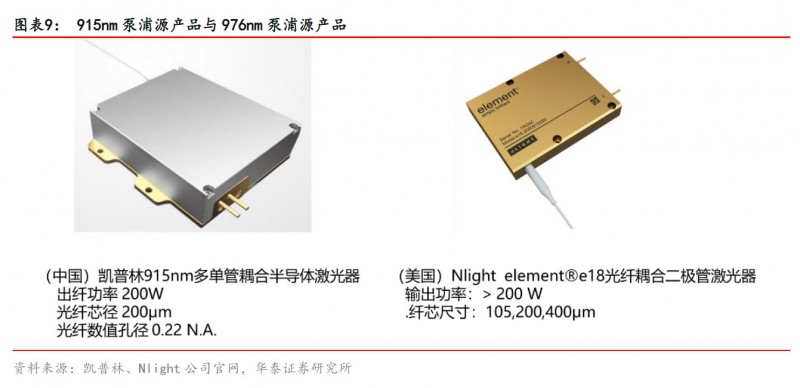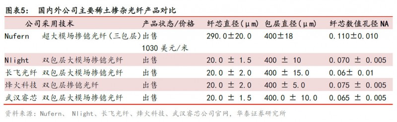 增益介質主要作用是產生光子,一般采用摻雜稀土元素的光纖作為增益介質。泵浦源的作用是對增益介質進行激勵使其輻射發光。光纖介質與國外最先進技術尚存在差距,在售產品參數上較接近但是穩定性和一致性有待提高。國內廠商雖然掌握泵源制造技術,但核心激光芯片仍依賴進口。