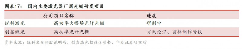 諧振腔的作用是篩選一定方向光子并進行放大,低功率光纖光柵已經能實現國產化并進行市場銷售,但光纖激光器采用的中高功率光柵大部分仍依賴進口。