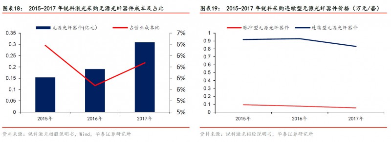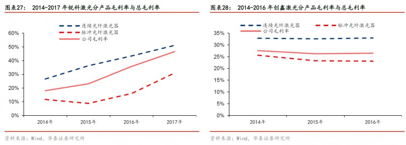 從國外龍頭公司情況來看,整合元器件產業鏈可以帶來較高毛利率。國內廠商目前毛利率水平較高,但增益介質、激光芯片和光纖光柵仍依賴于進口,核心元器件若進一步國產化有望為業績提供充足支撐。
