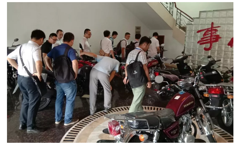 隨后,考察團馬不停蹄地前往總部展廳,一同參觀了目前大長江出品的大排量摩托車,各款造型別致、設計前衛的動力產品引起了大家的深厚興趣,特別是大排量的摩托車更是吸引大家紛紛駐足,產品性能各項指標和技術參數讓大家紛紛感嘆大長江集團展現了中國摩托車的核心競爭力。