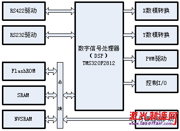 主控單元能夠控制激光器的出光、振鏡的角度偏轉,并能實時采集生產線的速度,生成速度誤差補償信號。其硬件結構如圖5所示。