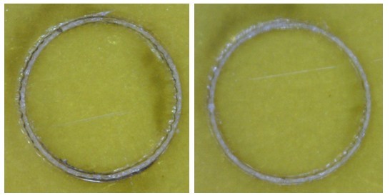 如圖3.1和3.2,通過硬件和軟件的優化,愛思達UV激光切割機(laser cutting)對碳化的控制技術有著顯著的提高,目前愛思達UV激光切割機(laser cutting)的碳化控制技術在某些方面已經趕上甚至優于國內外同一類型的UV激光切割機(laser cutting)。