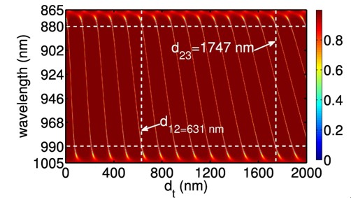 與半導體超晶格相類比,光子晶體異質結以及金屬-分布式Bragg鏡(DBR)結構是觀測光學Tamm態比較理想的兩種結構。超快激光團隊的陸培祥教授與楊光副教授等人對金屬-DBR結構中的光學Tamm態進行了研究,首次在該結構中發現了多重光學Tamm態的存在并揭示了多重光學Tamm態存在的內在原因——光學Tamm態的共振屬性,此外,還給出了在該結構中比較易于觀測光學Tamm態的金屬薄膜厚度范圍。這項工作對多通道濾波器的設計及空間光梳的應用等方面具有一定的指導作用。同行評審意見為:Reviewer 1#p#分頁標題#e#:“The paper contributes to the area of Tamm plasmons and their applications, which is developing rapidly.” Reviewer 2:“This is an interesting paper showing the potentiality of metal-dielectric Bragg mirror structures for realization of multiband frequency filters.”