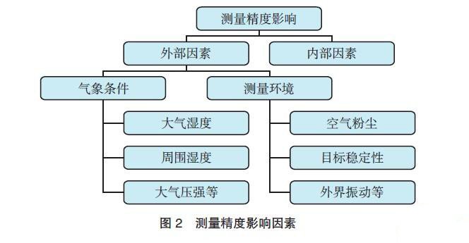 激光跟蹤儀是一種多學(xué)科綜合應(yīng)用的大尺寸工業(yè)測量儀器,其測量精度主要受測角和測距的精度以及環(huán)境的影響,如圖2所示。建立相應(yīng)的技術(shù)操作規(guī)范,每次使用測量之前,應(yīng)對儀器進(jìn)行現(xiàn)場檢查,判斷當(dāng)時的測量條件,并定期實施校準(zhǔn)。