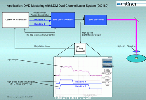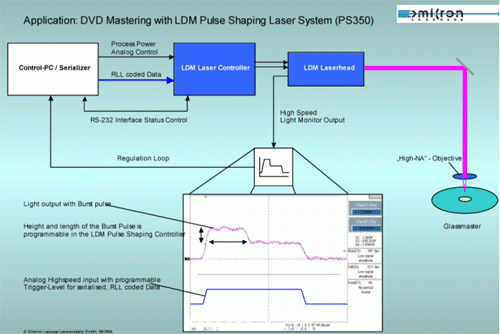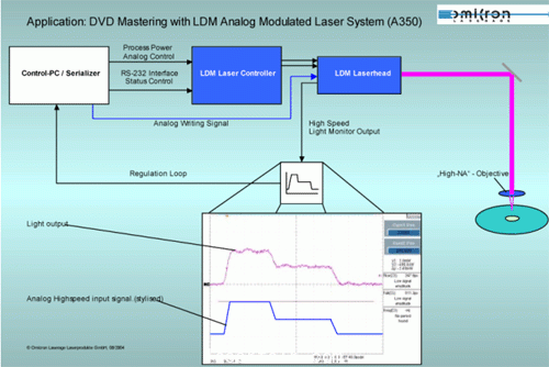 | 該激光模塊通過模擬調制,可以取代傳統氣體激光器必須依靠聲光 調制器來實現CD/DVD刻寫。 例如LDM405. 55. A350就是該應用的理想光源。LDM激光器的調制范圍和精度完全可以和聲光調制器的性能相比。 另外,LDM405. xx. A350 所配備的調制輸入接口與聲光調制器接口兼容,因此如果從現有的傳統激光加聲光調制設備升級的話無需任何擴展接口。 | ||||||||||||||||