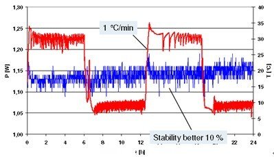 上圖中,紅線代表溫度的急劇變化(5℃~35),藍線代表平均功率波動情況,由圖中我們可以看出,不管外界環境溫度變化如何惡劣,激光器的功率變化也不超過10%。經過了惡劣環境的洗禮,D2.fs的穩定性和可靠性是毋庸質疑的,而且該產品性價比極高,非常適合工業級應用。