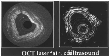 圖1為OCT影象和超聲波檢測結果進行對比,很顯然,OCT的分辨率更高,影象更清晰。