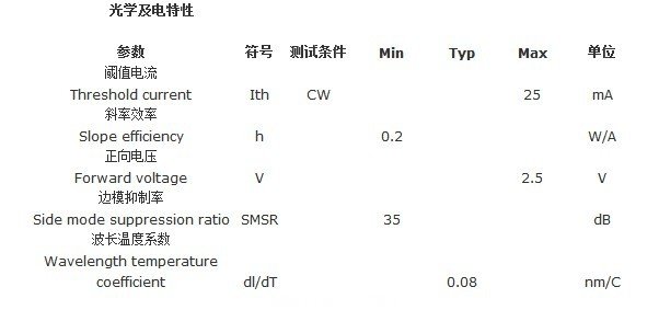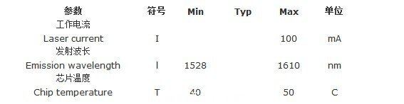 1550 納米及DWDM 波長 2.7Gb/sec, 200 km 無制冷分布反饋激光器芯