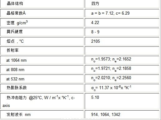 Nd:YVO4晶體材料的主要性質: