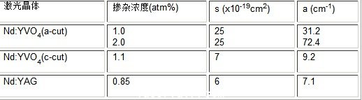 Nd:YVO4 與 Nd:YAG晶體的激光性質: