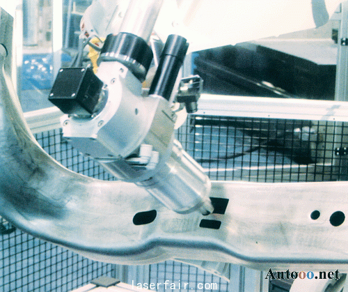 液壓成型管已廣泛地應(yīng)用于新型卡車和SUV的大梁、發(fā)動機(jī)支架、吊桿和頂柱,其硬度高、形狀復(fù)雜和重量輕的特點(diǎn)使得該結(jié)構(gòu)的應(yīng)用越來越廣泛。對于制造商來說,最大的挑戰(zhàn)是從單側(cè)切割這些密封管,過去,這些件是用先折彎, 然后點(diǎn)焊起來的裝配方式,因?yàn)槌尚颓笆瞧桨澹虼擞脗鹘y(tǒng)的沖床很容易完成,但對于成型件,沖床則不易加工。采用激光機(jī)器人切割系統(tǒng)和光纖傳導(dǎo)系統(tǒng)可以解決這個(gè)問題,同時(shí),用戶還可以在成型工件上進(jìn)行切割。