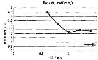 從圖10中可知,隨著氣壓的增大,表面粗糙度非線性遞減到1Mpa后,隨著氣壓的逐漸增大,表面粗糙度變化不大。