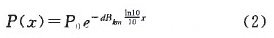 式中,P0是衰減前的激光功率;P是衰減后的激光功率。對于由傳輸長度引起的衰減來說,P0表示光纖中x=0處的激光功率,P是激光從x=0傳播到x=x處的功率。由式(1)可知,P(x)和P0的關系滿足#p#分頁標題#e#