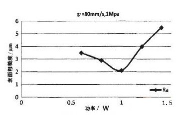 從圖8中可知,隨著功率的增加,表面粗糙度先緩慢降低,當功率P=1kW時,表面粗糙度最小Ra=2.01μm,但隨著功率的進一步增大,粗糙度又隨之增大。粗糙度并不與功率成線性關系,而是存在一個最佳值。