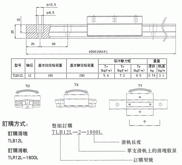 雙軸心式滑軌[TLB12L]