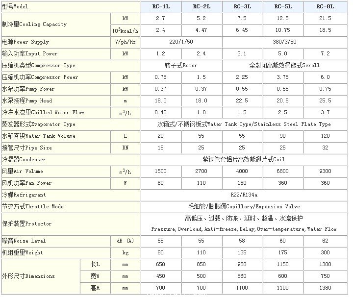 工業(yè)激光冷水機技術參數(shù)Laser Chiller Specifications