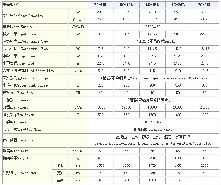 1、以上制冷量基于環(huán)境溫度35℃、進水溫度12℃、出水溫度7℃。