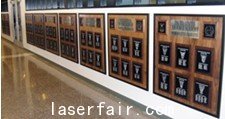 此打標項目由一個100W的Synrad CO2激光器、一個FH Flyer打標頭和我們的新版WinMark ProV6.0激光打標軟件構成。為了給8.5" x 11" 的陽極電鍍鋁打標,Flyer打標頭需配備370mm的透鏡以提供540 micron (0.021") 的焦距。每個銘牌的打標文件由TrueType®字體的文本和獨一無二的班徽構成,把這些信息都導入到WinMark Pro軟件中作為TIF格式的灰度圖像。文本和班徽由100W、速度為3810厘米每秒(150 in/sec)、安裝有雙向光柵的激光器打出。為了防止過掃描和圖像細節的損失,文本和TIF圖像的Filled Text Resolution應設置為476、TextCurve Detail 應設置為952。由于各班的學員人數和班徽都不相同,打標時間也會隨之變化,最具代表性的是每82平方英寸圖像的打標時間是115秒。如上如所示,鋁銘牌上的清晰標識是SynradCO2激光器打標的典型應用。