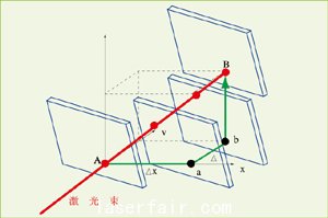 沿激光束方向的分步對角線位移測量及主軸或平面鏡的分步移動示意圖
