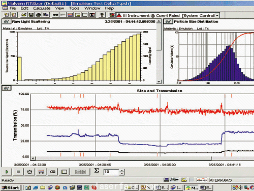 當被檢測介質中的顆粒濃度較高時,可以采用多散射方法進行檢測,從而減少對平均顆粒大小檢測的影響。介質中顆粒濃度的影響由檢測系統中的軟件自動校正。因此,該系統可以實現流程設備的現場檢測,可以檢測10000ppm濃度的介質顆粒。在許多流程工藝中,顆粒大小的均勻程度是一個重要的流程工藝控制參數。因此,這一檢測系統的實時檢測值與時間有著密切的關系,表示了顆粒隨時間變化的函數。系統使用的檢測控制軟件可以按日期對這些數據進行分類存儲,向更高級的控制系統傳送數據。