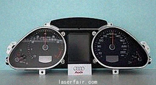 圖5:用有機(jī)玻璃為奧迪A6制造的儀表盤(pán)窗口,左圖沒(méi)有鍍膜,右圖鍍有防反射膜。
