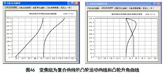 以上參數填寫結束,按動“確定”按鈕立即可以顯示變焦組運動曲線為復合曲線的凸輪曲線設計計算圖形如圖46。