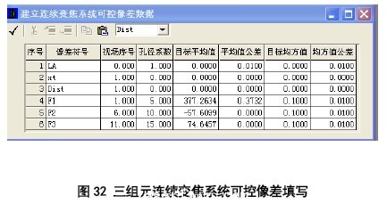 3) 對定焦距系統而言,只追求系統成像質量最終結果達到最佳狀態,而對連續變焦系統,不僅要求系統成像質量達到最佳,更要求系統成像質量在整個變焦過程中保持穩定。 對于定焦距系統其成像質量由像差,衍射和反差決定清晰度,而變焦系統則由像差,衍射,反差和偏離的變化決定清晰度[1]。為此,OCAD在對連續變焦系統像差優化時采取對各個變焦位置的可控像差取平均值及像差離散度的辦法保證其穩定性和最佳性。這樣對計算連續變焦系統時處理各變焦位置如此繁雜的數據進行了簡化,同時又保證了整個變焦過程中各像差數據的穩定性和最佳性。對三組元連續變焦系統的可控像差的平均值和離散值及其公差要求的數據填寫如圖32。像差自動優化過程評價函數由可控像差的目標值和其公差容限構成[4]。 對連續變焦系統的變焦部分,要求其對系統成像質量的穩定性發揮作用,對后固定組要求其對系統成像質量的最佳性起作用,也就是通過優化變焦部分的結構保證系統像差穩定,通過優化后固定組結構保證系統的像差質量最佳。