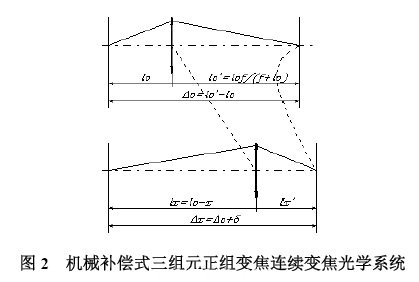 由以上計算公式及圖表分析對補償組在機械補償式三組元連續補償光學系統中的作用可以歸納如下。