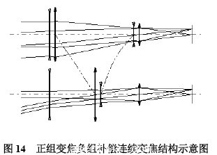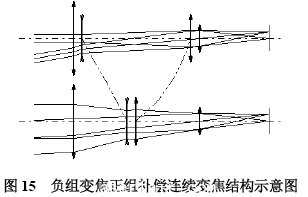 如果變焦組或補償組本身不是一個獨立組分,期間還和系統固定部分相間排列的變焦系統,有叫做雙組聯動型連續變焦系統。