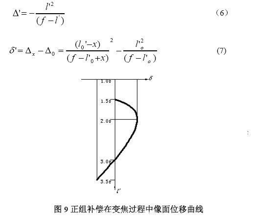 3) 像面位移量的大小,在變焦組的焦距值不變的前提下僅和物面位置(物距)有關。