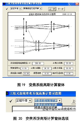 在進行變焦系統高斯光學外形尺寸計算時會因變焦方案的不同而有區別。利用物像交換原則和不用物像交換原則不同,使用補償組曲線求解時換根和不換根不同,正組補償和負組補償的具體計算方法也會不同。此外,就是一個變焦和補償方案,因對系統的具體要求不同其計算方法也會有所不同,比如有些系統需要根據前固定組的要求進行設計,有的系統要根據后固定組的數據及后工作距離的要求進行設計。為滿足這些要求,在可以自動進行變焦系統自動設計的OCAD光學設計程序中,就可滿足對正組補償和負組補償變焦系統的選擇要求,可以滿足根據前固定組求解和根據后固定組求解的不同選擇的要求。