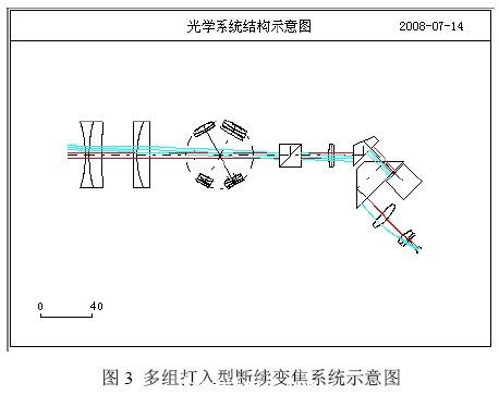 可以分多組以不同順序多次打入(出)不同光學光學零(部)件,每打入(出)一組光學零(部)件就可以獲得一次不同系統焦距變化的變焦系統,被稱做多組打入型斷續變焦系統。