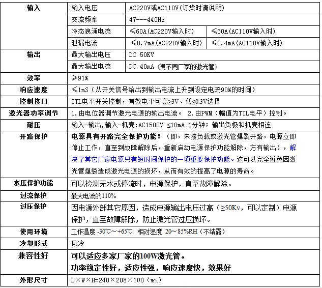 100W CO2激光電源