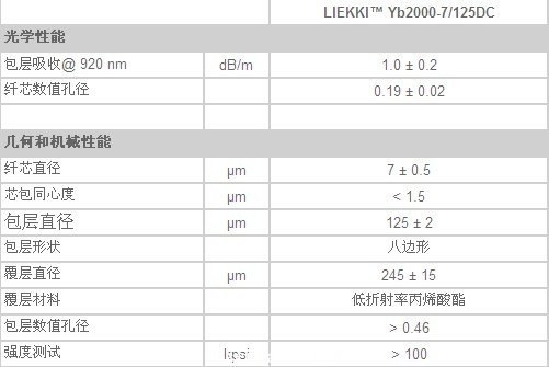 LIEKKI™ Yb2000-7/125光纖目前只提供雙包層(Yb2000-7/125DC)。