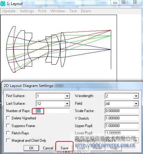 例如默認(rèn)打開視圖后輸出光線3條,下面我們?cè)O(shè)置為33條,并保存: