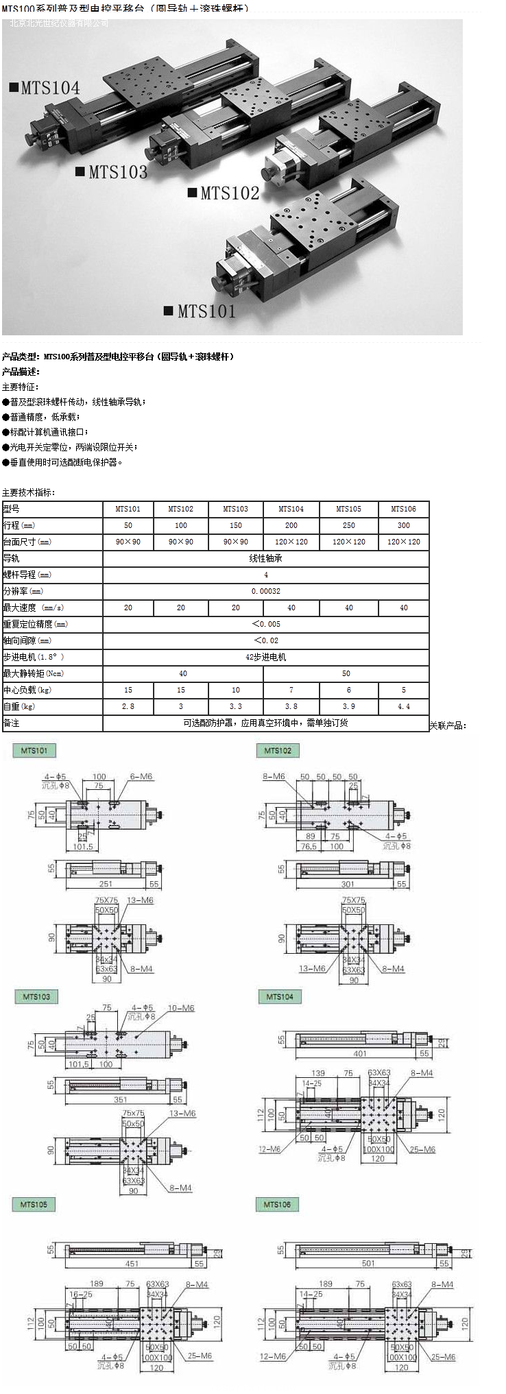 MTS100系列普及型電控平移臺(tái)(圓導(dǎo)軌+滾珠螺桿)